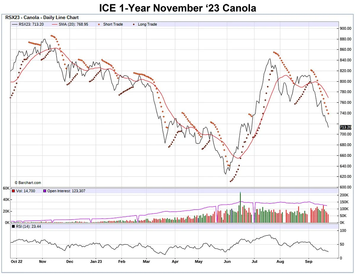 The oil share has become less in the crush, other countries’ rapeseed is cheaper, and China is buying less canola this year for now. All of these factors weaken canola prices.
